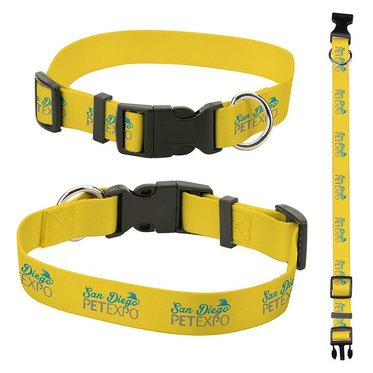 1" ADJUSTABLE NYLON COLLAR WITH FULL-COLOR DYE SUBLIMATION. STANDARD METAL D-RING LEASH ATTACHMENT, PLASTIC BUCKLE, ADJUSTS EASILY WITH TRI-GLIDE AND LOOP. REINFORCED WITH BOX AND CROSS-STITCHING FOR YEARS OF DURABLE COMFORT. 20" LONG.
