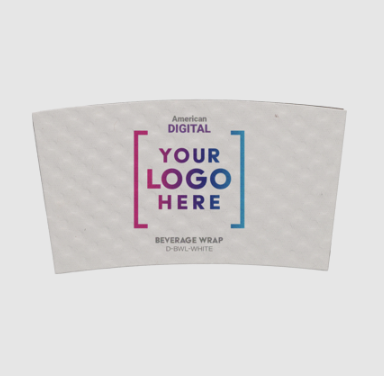 Promote your business to clients every time they reach for their favorite beverage! Biodegradable, recyclable and made from renewable resources, these beverage wraps are textured for insulation and fit our 12, 16 and 20, 24 oz. White Paper Cups or Eco-Friendly Cups. Each one can be customized with brand name, logo or message using digital 4 color process printing and full bleed is included in the price, if applicable. A second side imprint is available for an upcharge. This product is made and printed in the USA. Only guaranteed to fit our cups.