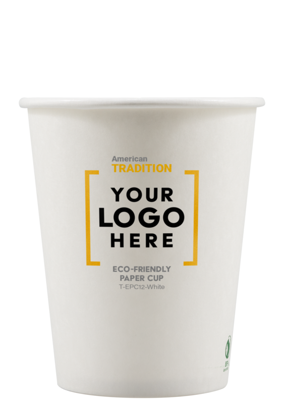 Our efficient and effective Eco-Friendly Paper Cups are designed for both hot and cold beverages! This eco-friendly white cup has a 12 oz. capacity with a PLA coated interior, and is made from renewable resources that are compostable and biodegradable. It can be screen printed with a brand name and logo, or purchased without an imprint. We offer an unlimited number of imprint colors. Each cup can be printed on one side only; metallic and neon ink colors are offered an no extra cost. Free PMS matching. Made and printed in the USA. An excellent choice for corporate parties, company picnics, large gatherings, tradeshows, hotels, and much more!