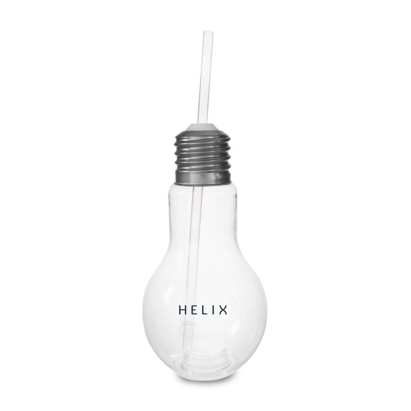 Have a bright idea? Brand your logo on it with our 16oz Light Bulb Cup with Straw. Each clear light bulb cup is 7" tall by 3 1/2" at the widest 'bulb' part. Each cup comes with a screw on metal top and a 9" clear, reusable, flexible straw, perfect for when you're serving your signature drinks at your next party or promotional campaign. This plastic cup is perfect for savvy crafters and DIY'ers or give it away as a Christmas or Back to School promotional item.