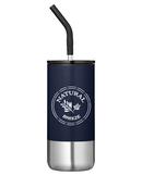 Stainless steel outer and plastic inner liner. Snap on, spill resistant lid with 10" straw with silicone tip. BPA free. Meets FDA requirments. Hand wash recommended. Imprint Area: Silk-Screen: 2 ½" W x 2 ½" H • Wraparound: 5" W x 2 ½" H (Silk-Screen Only).