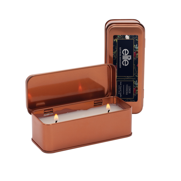 This rectangular scented candle will have them daydreaming about your brand on their most relaxing weekends. Your branded lid will stay conveniently attached thanks to it's sturdy hinge opening. With a full-color branded label and metallic copper tin, it's a high-end, calming way to make them burn for more.