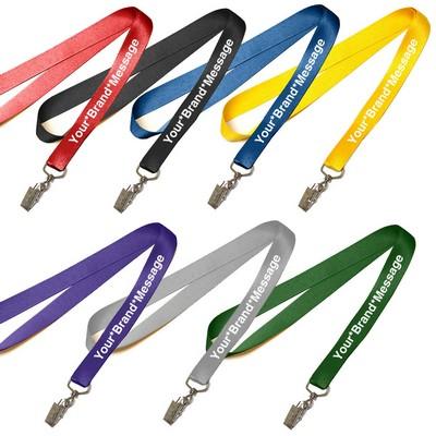 100% polyester, screen printed lanyards perfect for any event or workplace environment. Available standard attachments include J-hook, Bulldog Clip, Lobster Claw and O-Ring. Add an optional plastic safety breakaway clip or airplane buckle. 3/4" W x 36" L