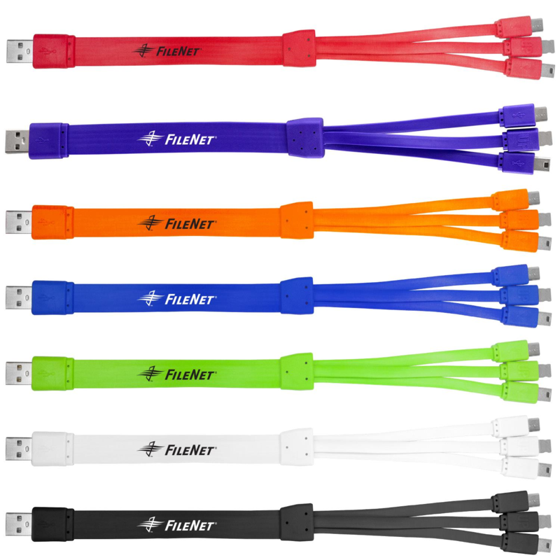 Wide noodle 3-way charging cable; Multiple USB adapter