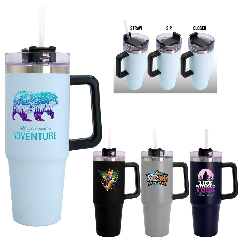 • Metal tumbler can hold up to 30 oz.
