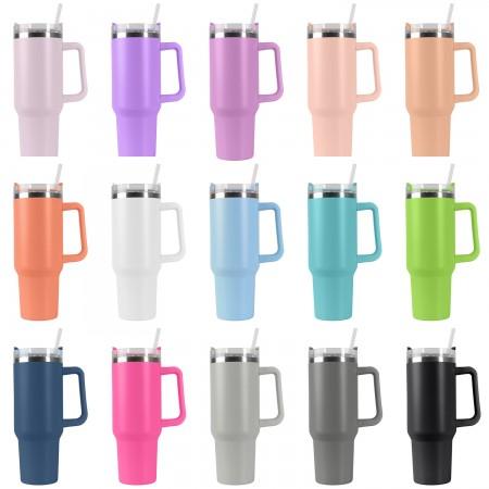 This stainless steel tumbler can keep beverages hot, cold, or iced for hours and has a rotating lid with three different openings. It fits in car cup holders, is made of BPA-free stainless steel and includes a reusable straw. Hand wash only. Logo imprinted branded. Complies with CPSIA, FDA, Prop 65. 10" H x 3.8" Diameter.