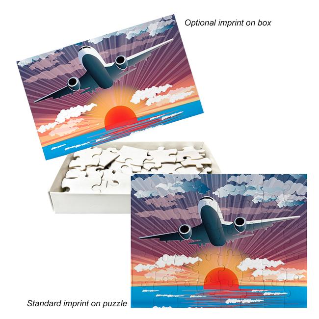 IMPRINT AREA AND METHOD: Puzzle: 10 ½" W x 8" H • Optional Box Lid: 7 ½" W x 1 ⅛" H x 4 ½" D