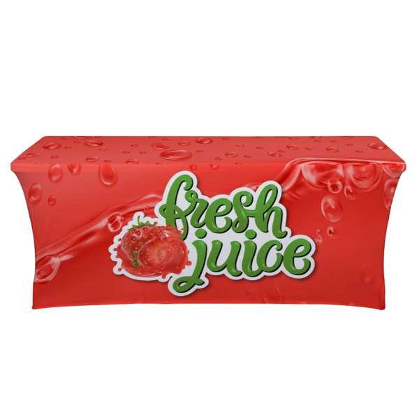 This form-fitting throw is an attractive option for promoting your brand. It stretches to fit tightly around tables, creating a crisp, refined appearance.