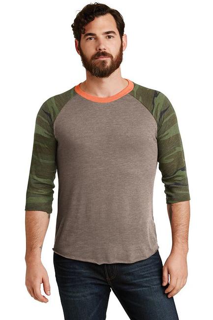 High-impact color combinations leave a high-impact impression in this tee that's a study in contrast and comfort. 4.13-ounce 50/38/12 poly/cotton/rayon 50% polyester (6.25% recycled) 38% cotton (6.25% organic) 12% rayon Contrast raglan sleeves Slight shirttail hemAlternative Apparel reserves the right to prohibit the addition to any Alternative Apparel product any mark name design or logo that does not meet the high standards of the brand. Please contact your sales representative with questions. These products may not be resold without embellishment.