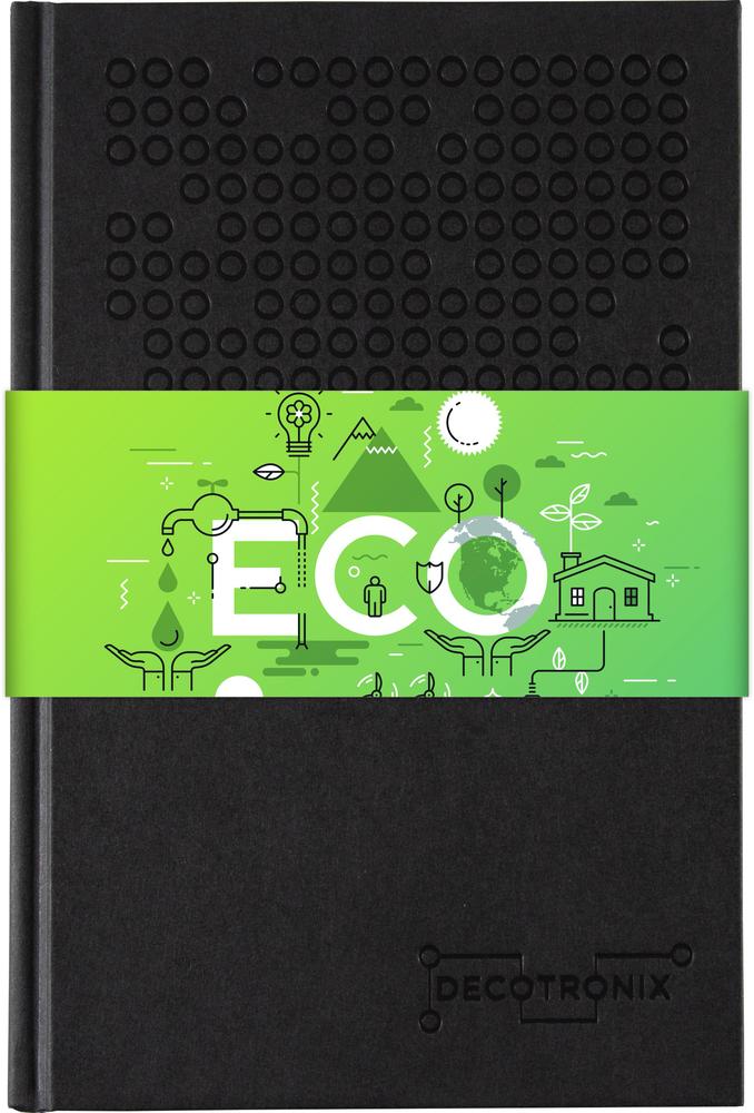 US-made journals with Recycled hard covers. Includes a 1-color foil imprint or blind deboss imprint up to 16 square inches and full-color graphic wrap. 80 sheets of white, ruled paper. Made and decorated in the US.
