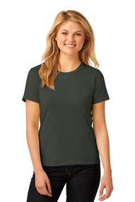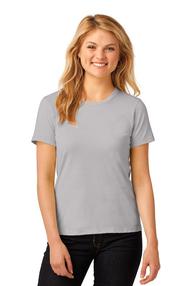 4.5-ounce 100% ring spun cotton 65/35 ring spun cotton/poly (Heather Blue Heather Dark Grey Heather Green Heather Purple) 90/10 ring spun cotton/poly (Heather Grey) Semi-fitted silhouette with side seam TearAway label Seamed collar Shoulder-to-shoulder taping Double-needle sleeves and hem