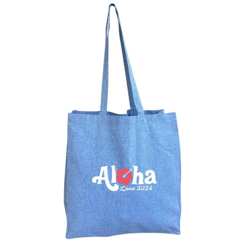 This everyday shopper tote stands out with its soft color palette. Made with recycled cotton (80%), you'll look good while knowing you're reducing waste. Features 27" long handles and a full 5" gusset. 8 oz.cotton.