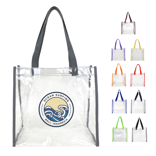 Feature: Clear Open Tote; This bag complies with the new NFL & PGA security bagrequirements; Perfect size for any sporting event and outdoor outings. 1" wide x 19" long handles.