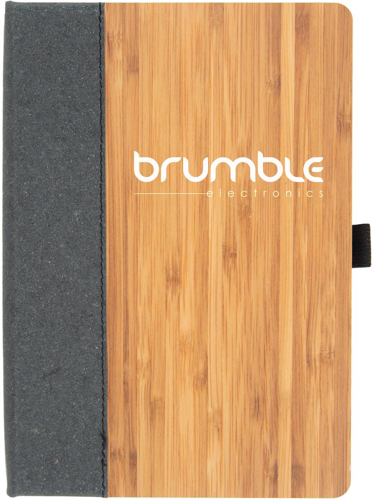 FSC Bamboo Bound journal features a unique FSC-certified bamboo cover with recycled leather accent and thread-sewn book binding. It includes 80 sheets of recycled, white lined paper as well as an elastic closure, ribbon page marker, and back paper pocket. and pen loop. Limited to screen-print only.