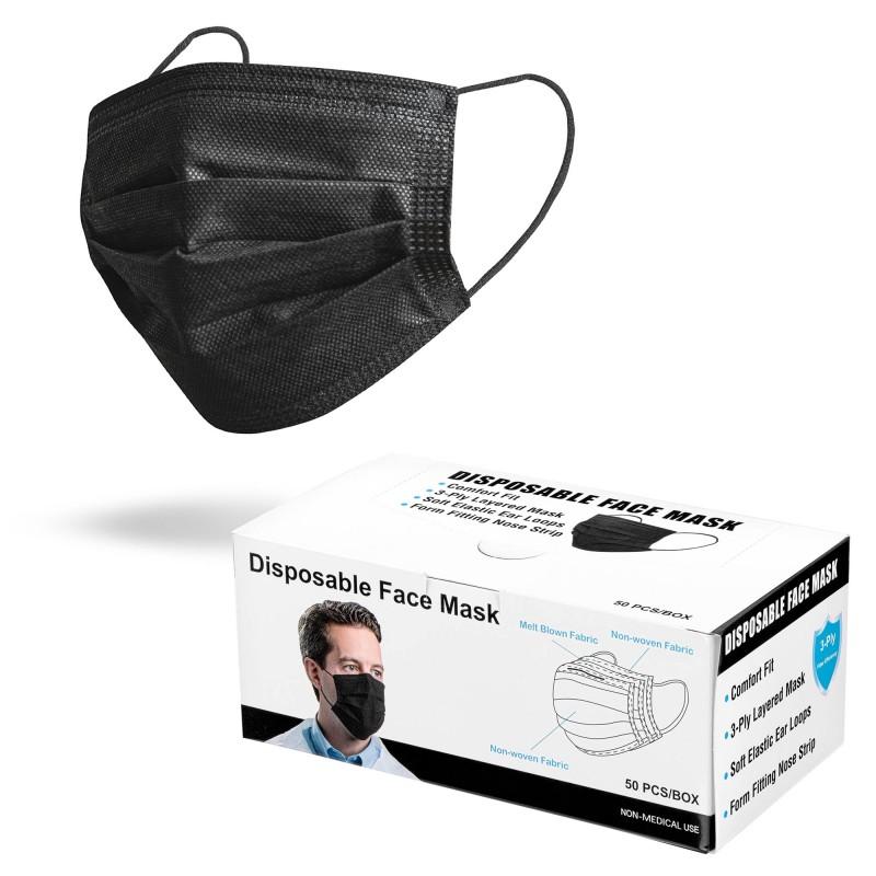 These high quality 3-layer disposable face masks are comfortable and easy to use. The solid black exterior design is both fashionable and professional. The white non-woven interior layer is soft and comfortable against the users face.