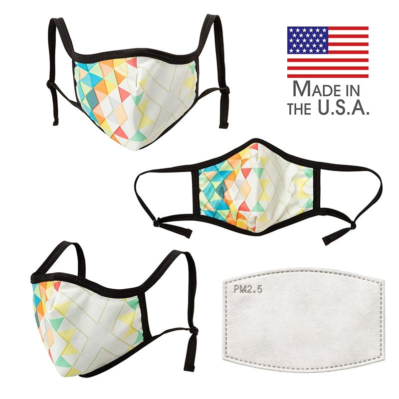 Made in the USA, the Border I 3-layer mask combines extra protection against microbes and pollutants with a soft, comfortable and breathable 3D fit. The exterior 170g polyester active weave and the interior ultra-soft cotton blend layers are machine washable, and the third layer is a replaceable PM2.5 filter inserted between the two cloth layers. The Border I mask includes tension-free ear straps, easy-slide adjustable ear buckles, a built-in nose bridge, and a dual-sided opening filter pocket for easy filter insertion and is available in 2 sizes (VL2706-S/M, VL2707-L/XL). One PM2.5 filter included. Not certified for medical use.