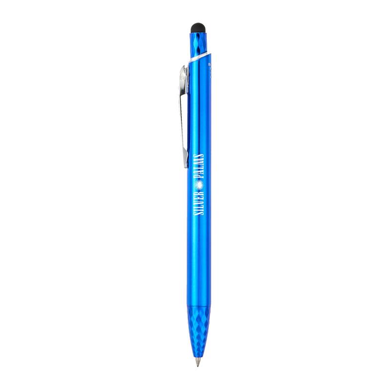 The Brite Recycled Aluminum Gel Stylus Pen brings sustainability and functionality together with a UV-coated barrel made from 94% recycled aluminum and a unique diamond-textured tip for a comfortable grip. This pen features a precise 0.5mm tip that provides 150 meters of smooth black gel ink, making it perfect for extended writing. By choosing this pen, you're supporting environmental nonprofits through our partnership with 1% For The Planet. 0.41" W x 5.51" H