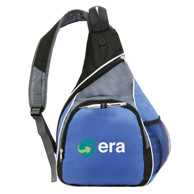 With more pockets and a headset keyhole- this bag is perfect for life on the go. The back panel and shoulder strap are padded for extra comfort. The stylish colors and white piping are sure to turn heads and the front pocket boasts a large imprint area. Made of 600D Polyester with non-woven accents.