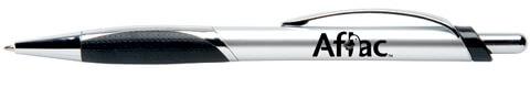 Cool and contemporary, this customizable Chillex® pen makes a great corporate or trade show giveaway. Metallic jewel tones give this plastic click-action ballpoint pen a metal-like look. Features include a jumbo metallic barrel with striking chrome accents, a black rubber pillow grip framed by sculpted chrome trim, and smooth-writing black ink. For best results, the recommended imprint color is black on the silver barrel.