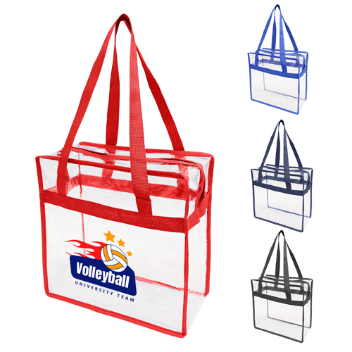 This bag complies with the new NFL & PGA security bag requirements; Perfect size for any sporting event and outdoor outings. 1" wide x 26" handles. Zippered top and full 6" gusset.