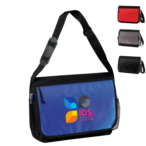 Padded compartment with hook & loop closure; Fits most 17" laptops; Organizer; Flap with velcro closure; Front zipper pocket on flap; Side open pocket; Side mesh pocket; Adjustable strap with comfort pad. Strap up to 44.5 inches