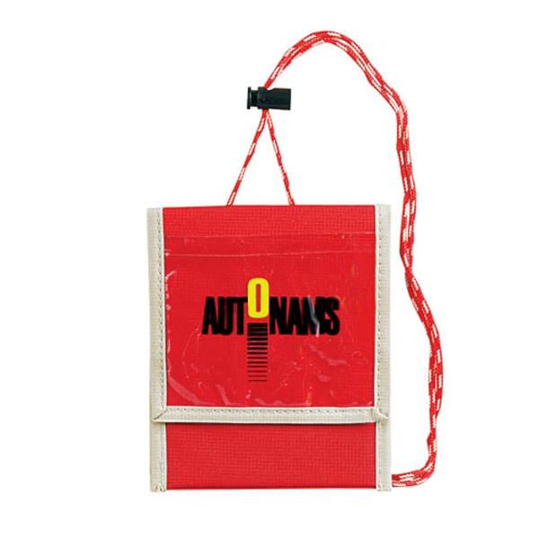Stay organized and secure with the Convention Travel Neck Wallet. This handy travel storage tool measures 5" x 6.5" and uses 300 denier ripstop polyester with a PVC backing. Features include a main compartment with a Velcro closure, zippered mesh pocket beneath the flap, rear open pocket, convenient pen loop and a front clear PVC pocket for a name card display. An adjustable nylon cord makes finding the right fit for your needs easy and a lock means you can travel with security and confidence.