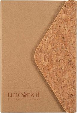 Smooth, Natural hard covers with Cork covered flap with magnetic closure. Includes a blind deboss imprint up to 16" sq. 80 sheets of off-white, ruled paper. Features matching satin ribbon bookmark and thread-sewn book binding. Limited to Black and shiny metallic foils. Imported book, decorated in the USA.