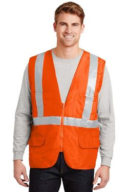 This highly breathable vest helps ensure comfort as well as safety. ANSI/ISEA 107 Class 2 certified 100% polyester oxford for smooth printing Dyed-to-match binding and Vislon zipper Mesh inset at back for breathability 2-in. wide reflective taping on front and back Chest and lower pockets for pen and tools This garment must be fully zipped to be in compliance with ANSI/ISEA 107 standards