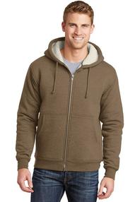 For chilly days on the jobsite nothing beats this hardworking fleece jacket. The DWR-finished outer layer and hood resist light rain while the sherpa fleece lining keeps you warm. This versatile heavy duty jacket can be worn fall through spring.23-ounce 53/47 cotton/poly fleece bonded to 100% polyester sherpa fleece with DWR finish 2-ounce polyfill in sleeves for added warmth Hood with dyed-to-match drawcord Heavy-duty metal zipper Rib knit cuffs and waistband Front hand warmer pockets