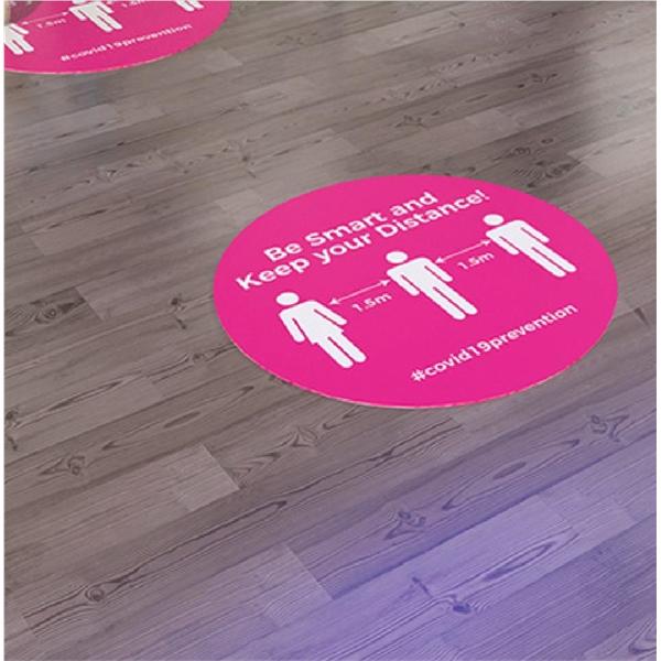 Custom shapes and sizes available. UL Approved, slip resistant floor decals help call attention to the current need for social distancing. Place these six feet apart and in front of cashiers and entrances, or any place in which a line would form. Decals are designed to stick to any type of flooring and remove easily. Heavy duty floor decals made for easy install and easy, residue free, removal. Slip and skid resistant. UL Approved. Our product works on ALL smooth flooring types