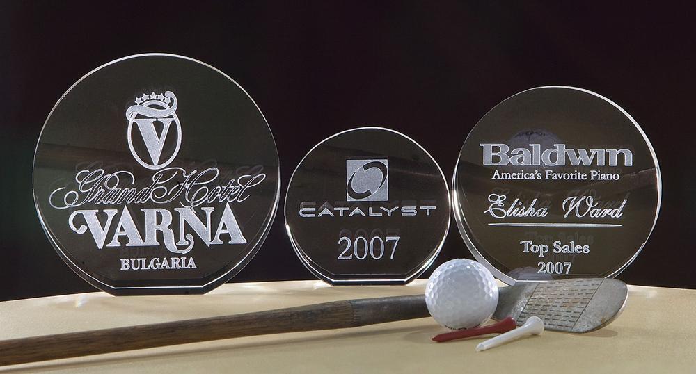 Top quality 3D laser engraved crystal circle shape award. Wow! Awards, events, companies, employees what a way to display your recognition!