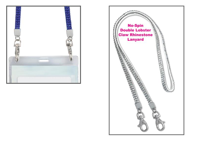 No-Spin double lobster claw rhinestone lanyard.