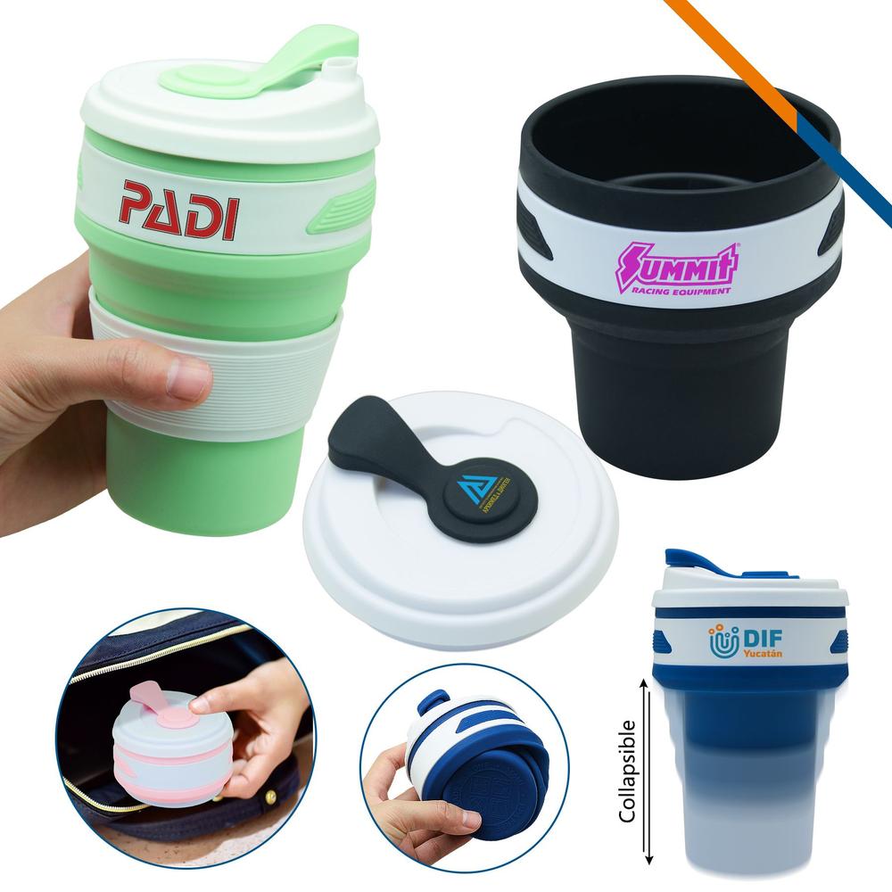 You will love how little space and lightweight this e-collap travel mug is. It is collapsible and compact and takes up less room in your pocket, backpack, and they fit in your car or camping cup holder as well. The Ideal Travel Companion, It is all you need for a drink on the go! Portable and reusable cup that includes reusable lid leak-proof, Scald-proof for all cold and hot drinks. Made of food grade high quality silicone, mold proof and does not contain BPA, easy to clean and is freezer and dishwasher safe. Multiple imprint location can fit any shape of logo with any color you want. FDA certified