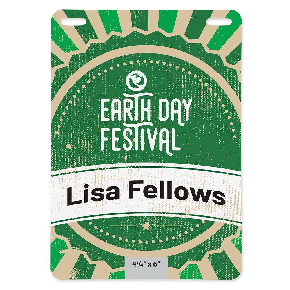 Sustainable is now stylish with the 30-mil biodegradable Eco Event Badge. Constructed of biodegradable elements, two-thirds of the badge will biodegrade into earth-friendly material within 5 years of disposal. This durable, eco-friendly alternative is the same cost as the premier gloss and satin event badges but has the added benefit of reducing your organization’s environmental impact post-use.