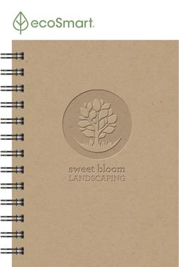 Choose from our 100% recycled paperboards - Natural, EcoBlack, and Gray - for front and back cover. Includes 1-color foil or blind deboss imprint up to 16" sq. 100 sheets of 60# lined EcoFiller, or blank. Graph or dot grid available for an upcharge (contact sales for pricing). Black wire binding is standard; also available in white, bronze and pewter.