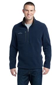 Hit the trail or the streets in warmth and style. Contrast rolled top collar zippered chest pocket reverse coil contrast zipper open cuffs and an open hem. Contrast Eddie Bauer logo embroidered on right chest. Made of 12-ounce 100% polyester fleece which incorporates Low Impact Technology for enhanced softness and performance.