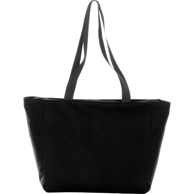 The Essential Zip Convention Tote has a zippered main compartment, dual side pockets and 12 inch drop handles.