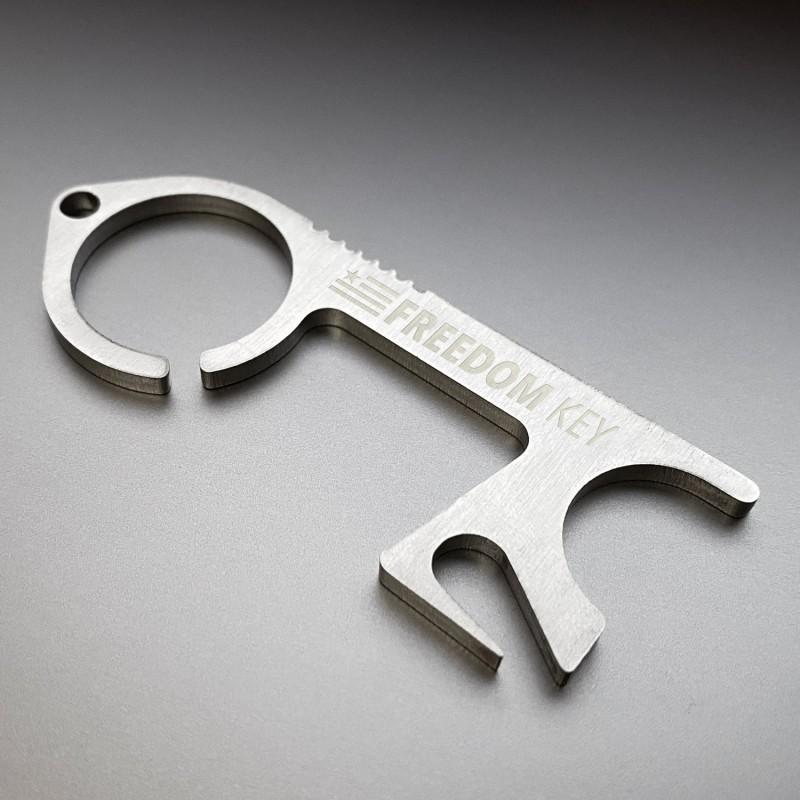 This USA made key is designed to be a convenient multi-function no-touch germ avoidance tool. Stay healthy and safe by preventing cross-contamination with our stainless steel innovative tool! The Freedom Key is uniquely designed to help prevent your hands from touching high-contact, germ-ridden surfaces in the fight to stop COVID-19 pandemic.