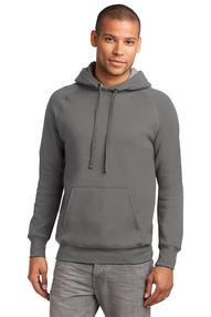 7.2-ounce 80/20 ring spun cotton/poly 100% cotton face for superior embellishment Triple-needle stitching throughout Contrast hood lining Dyed-to-match drawcord Raglan sleeves Front pouch pocket Charcoal Heather is 56/44 cotton/poly
