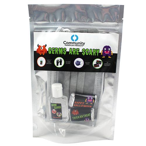 PPKT-5H - Indiviual PPE Kit includes: 1 (3-ply) Mask, 1 Pair of Gloves, .5 oz. Sanitizer, 2 HERSHEY'S® MINIATURES™