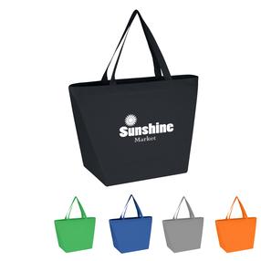 This bag has all the right ingredients for a successful promotion! Measuring 11 1/2" x 15 1/2" with a 9 1/2" gusset, the 80 GSM polypropylene Big Kahuna features 19" long reinforced handles to carry comfortably, a bottom panel insert and aluminum lining insulation that will keep food hot or cold. Offered in several vibrant colors, a zipper closure and front pocket are also included. Customized with your logo, you'll get brand exposure down each aisle!