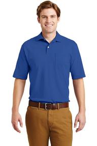 5.6-ounce 50/50 cotton/poly preshrunk jersey with SpotShield stain resistanceSpotShield fabric repels water and most oil-based spillsTag-free label Welt knit collar that resists curling 2-button placket with reinforced bottom box Pearlized buttons Double-needle sleeves and hem Oxford is 47/53 Ash (formerly Birch)
