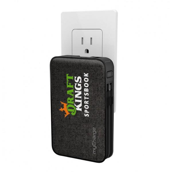 The new myCharge Powerhub Ultra 10,000mAh Everything Built-in Portable Charger is one of a kind and packed with power. With an integrated iPhone (Apple® Lightning™) cable, an integrated USB-C cable, and built-in USB-A & USB-C ports, you can keep all your devices charged anywhere. Carrying charging cables is a thing of the past, not only are the cables built in for effortless charging but self-contained wall prongs make for effortless recharging – just plug it directly into the wall.
