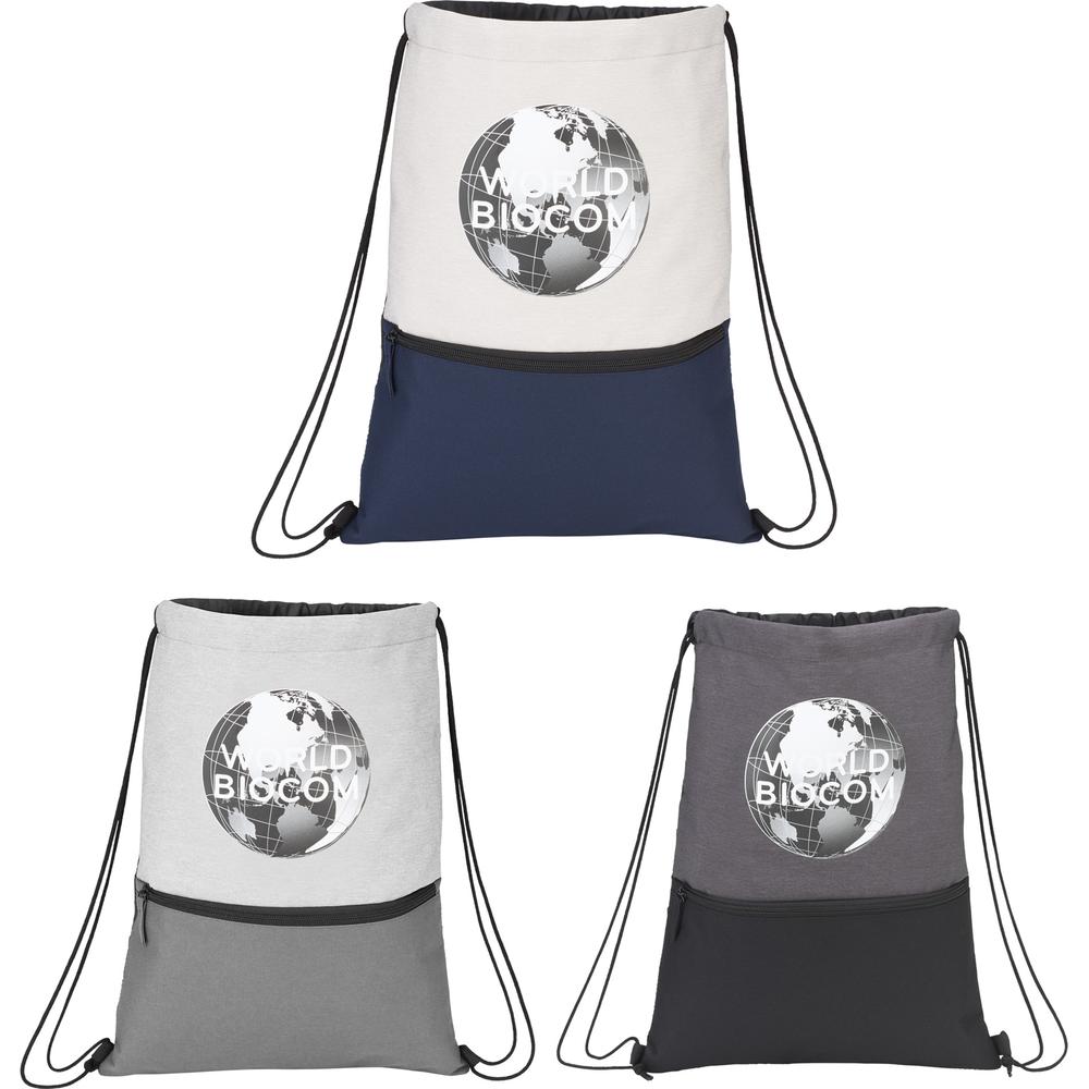 The Merlin Drawstring Bag features trendy color-blocking and a cinch closure. This drawstring also features a front zippered pocket for extra organization.