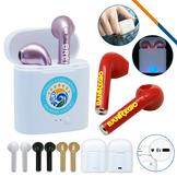 These high quality earbuds feature a remote control and microphone on the wire; ideal for inflight air travel where wireless technology is inaccessible. They securely roll up into an imprinted carrying case. Size: W x H: 2.4" x 2.4"