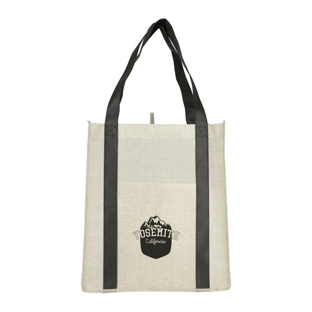 The Neptune Recycled Non-Woven Grocery Tote stands out as the ultimate solution for your grocery needs! With its extra-large design, it effortlessly holds all your items. This innovative and natural-looking approach to non-woven bags ensures a unique style. It also features a front pocket for easy access to additional items. Say goodbye to shopping struggles with the unparalleled Neptune Tote.