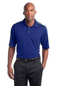 Get noticed. Bold heat transfer graphics on the shoulders and Dri-FIT moisture management technology make this polo a sporty high performer. Design details include a self-fabric collar three-button placket open hem sleeves and side vents. The contrast heat transfer Swoosh design trademark is on the center back. Made of 5.4-ounce 100% polyester Dri-FIT fabric.