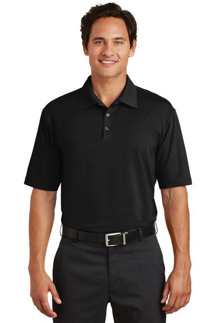 A beautiful and luxurious addition to any wardrobe. Subtle ottoman texture meets the unrivaled performance of Dri-FIT moisture management technology. Engineered with a bonded self-fabric collar for classic refinement. Three-button placket. Heat transfer label for tag free comfort. Pearlized buttons with metal rims. Open hem sleeves and side vents. Contrast heat transfer Swoosh design trademark on the back right shoulder. Made of 5.61-ounce 87/13 polyester/spandex Dri-FIT fabric.