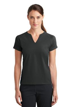 A stretch woven front joins with a knit back for exceptional ease of movement and a sleek high-performance look. Dri-FIT moisture management technology helps keep you dry and comfortable. Tailored for a feminine fit with a flattering v-neckline and raglan sleeves. Design details include open hem sleeves with a contrast heat transfer Swoosh design trademark on the left sleeve. Front made of 4.7-ounce 84/16/poly/spandex stretch woven and back made of 4.2-ounce 100% polyester knit Dri-FIT fabrics.