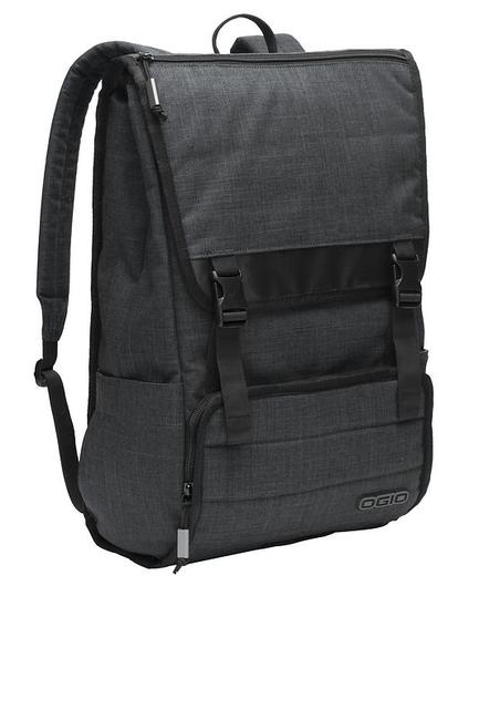 This rucksack keeps your laptop and other tech gear well-protected while the two-tone crosshatch pattern adds modern street-cred.TPE-backed two-tone 600D polyEasy-access top-loading padded laptop compartmentPadded tablet/e-reader sleeveFront flap zippered pocket for easy decoration accessDouble buckle front flap closureInterior mesh organizer pocketsFront accessory pocket with mesh pocketsSide beverage pocketSide accessory pocketLaptop sleeve: 15.5 h x 10.5 w x 1 d; fits most 17 laptopsDimensions: 18.5 h x 12.25 w x 6.5 dCapacity: 1 300 cu.in./21LWeight: 1.4 lbs./0.57kgNote: Bags not intended for use by children 12 and under. Includes a California Prop65 hangtag.